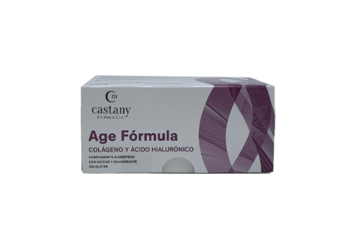 Castany Age Fórmula contiene el complejo Colágeno Verisol®, ácido hialurónico (potente humectante, permite retener agua en la piel modificando el volumen, al compresibilidad y distensión de los tejidos), manganeso (antioxidante mitocondrial muy potente) y xilitol (además de su acción edulcorante es capaz de producir un aumento de la biosíntesis de péptidos del colágeno). El efecto sinérgico de todos estos componentes permitirán que tu piel se vea mucho más hidratada, luminosa y con una mayor elasticidad.